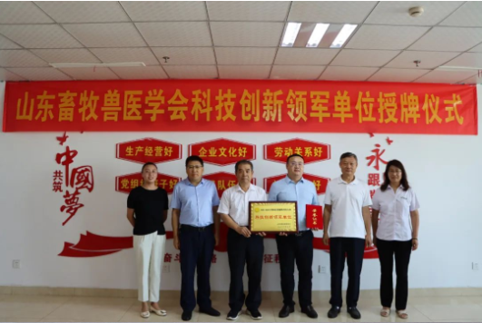 2022年8月1日,山東畜牧獸醫(yī)學(xué)會“科技創(chuàng)新領(lǐng)軍”單位授牌儀式成功舉行,出席此次授牌儀式的有山東畜牧獸醫(yī)學(xué)會黨支部書記、副理事長兼秘書長崔言順教授,山東農(nóng)業(yè)大學(xué)趙孝民教授,山東農(nóng)業(yè)大學(xué)張桂國教授,山東健源生物科技有限公司王誠董事長等相關(guān)負(fù)責(zé)人參加。