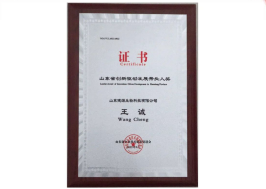 2022-10-5 山東健源生物董事長(zhǎng)王誠(chéng)榮獲山東省創(chuàng)新驅(qū)動(dòng)發(fā)展帶頭人獎(jiǎng)
